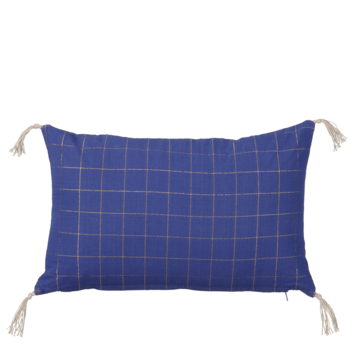 Dit rechthoekige sierkussen met ruitjes en schattige kwastjes op de hoekjes voegt een speelse en stijlvolle touch toe aan je interieur. De klassieke ruitjes en de verfijnde kwastjes maken het een elegant accent voor elke bank of stoel. Perfect voor een gezellig en trendy uiterlijk! De kleur is blauw en de afmetingen zijn L55 x B35 x H10 cm.