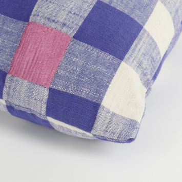 - Blauw sierkussen met klassieke ruitjes en verfijnde stippen