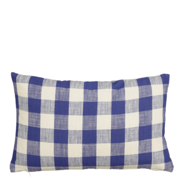 Dit rechthoekige sierkussen met ruitjes en stipjes voegt een speelse en stijlvolle touch toe aan je interieur. De klassieke ruitjes en de verfijnde stippen maken het een elegant accent voor elke bank of stoel. Perfect voor een gezellig en trendy uiterlijk! De kleur is blauw en de afmetingen zijn L55 x B35 x H10 cm.