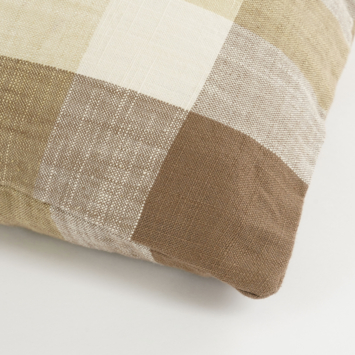 - Bruin sierkussen met ruitjes en gekleurde blokjes