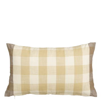 Dit rechthoekige sierkussen met ruitjes en blokjes voegt een speelse en stijlvolle touch toe aan je interieur. De klassieke ruitjes en de gekleurde blokken maken het een elegant accent voor elke bank of stoel. Perfect voor een gezellig en trendy uiterlijk! De kleur is bruin en de afmetingen zijn L55 x B35 x H10 cm.