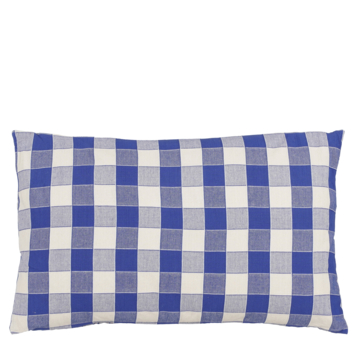 Het geruite kussen zorgt voor een gezellige toevoeging aan elk interieur! Het rechthoekige sierkussen heeft blauw-witte ruitjes. Omdat het kussen handgemaakt van katoen is, voelt het heerlijk zacht aan. Zo is het kussen niet alleen leuk als decoratie op de bank of het bed, maar ook nog eens comfortabel. Win-win! Naast dat dit kussen flair toevoegt, heeft het ook nog eens een extra veiligheidskenmerk door de brandvertragende vulling. De afmetingen zijn L80 x B50 x H10 cm.