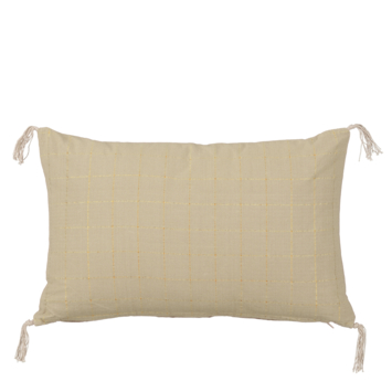 Dit rechthoekige sierkussen met ruitjes en schattige kwastjes op de hoekjes voegt een speelse en stijlvolle touch toe aan je interieur. De klassieke ruitjes en de verfijnde kwastjes maken het een elegant accent voor elke bank of stoel. Perfect voor een gezellig en trendy uiterlijk! De kleur is lichtbruin en de afmetingen zijn L55 x B35 x H10 cm.