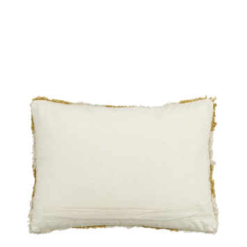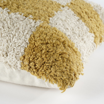 Geef je interieur een boost met dit sierkussen! Het tijdloze kussen heeft de vorm van een rechthoek en heeft een oker-wit blokpatroon. Door het ontwerp past het in elke woonstijl: van landelijk tot modern. Hij is handgemaakt van katoen. Hierdoor ziet hij er niet alleen leuk uit, maar is hij ook nog eens heerlijk om tegenaan te zitten. Hij zit extra lekker door de zachte afwerking, erg fijn! Verder heeft het kussen een ritssluiting waardoor je de kussenhoes kunt reinigen en is hij gevuld met een brandvertragende vulling. De afmetingen zijn L35 x B25 x H10 cm.