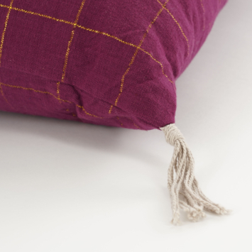 - Paars sierkussen met klassieke ruitjes en schattige kwastjes op de hoekjes