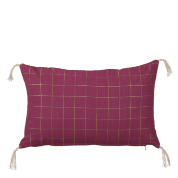 Dit rechthoekige sierkussen met ruitjes en schattige kwastjes op de hoekjes voegt een speelse en stijlvolle touch toe aan je interieur. De klassieke ruitjes en de verfijnde kwastjes maken het een elegant accent voor elke bank of stoel. Perfect voor een gezellig en trendy uiterlijk! De kleur is paars en de afmetingen zijn L55 x B35 x H10 cm.