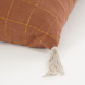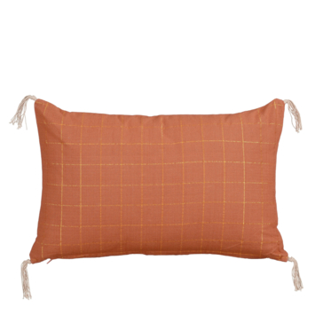 Dit rechthoekige sierkussen met ruitjes en schattige kwastjes op de hoekjes voegt een speelse en stijlvolle touch toe aan je interieur. De klassieke ruitjes en de verfijnde kwastjes maken het een elegant accent voor elke bank of stoel. Perfect voor een gezellig en trendy uiterlijk! De kleur is terra en de afmetingen zijn L55 x B35 x H10 cm.