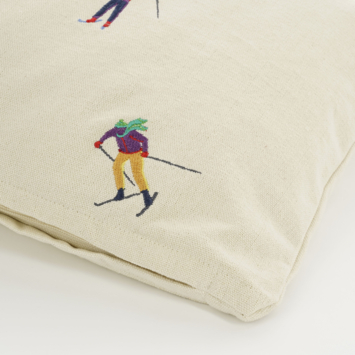 Houd je van een grappig item in je interieur? Dan is dit sierkussen perfect! Hij komt in een neutrale, off-white kleur met een print die bestaat uit skiërs. Door deze print komt hij ook erg goed tot zijn recht in een kinder- of tienerkamer. De afmetingen zijn L55 x B35 x H10 cm.