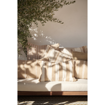Op zoek naar het perfecte sierkussen voor een neutrale setting? Zoek dan niet verder! Dit rechthoekige sierkussen is de perfecte toevoeging aan een interieur met rustige kleuren. Het kussen, handgemaakt van katoen, heeft een beige kleur met bruine strepen. Door de zachte en brandvertragende vulling is dit kussen erg comfortabel om tegenaan te zitten. Leg hem op je bank, fauteuil of bed als decoratie! Het kussen heeft een lengte van 55 cm, een breedte van 35 cm en een hoogte van 10 cm.