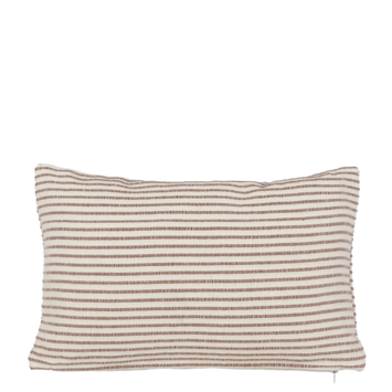 Dit sierkussen voegt een elegante touch toe aan je interieur. Dit rechthoekige kussen is donkerbruin-crème gestreept, waardoor het verfijning en stijl uitstraalt. Het is handgemaakt van katoen: heerlijk zacht en comfortabel om tegenaan te zitten tijdens het lezen of tv-kijken. Bovendien is de kussenhoes afneembaar dankzij de ritssluiting. Plaats dit sierkussen als decoratie op de bank of op het bed en geniet van dit esthetische item. Verder voegt dit kussen niet alleen flair toe, maar heeft het ook nog eens een extra veiligheidskenmerk door de brandvertragende vulling. De afmetingen zijn L55 x B35 x H10 cm.