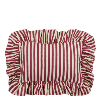 Dit gestreepte sierkussen met ruches geeft je ruimte een leuke en stijlvolle touch. De combinatie van donkerroze strepen en ruches maakt het een vrolijke aanvulling op je bank of fauteuil. Het kussen is gemaakt van zacht katoen en komt in de afmetingen L69 x B49 x H10 cm.