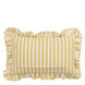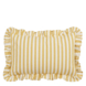 Wist je dat de kleur geel voor vreugde en geluk staat? Het gestreepte kussen is daardoor een vrolijke toevoeging aan elk interieur! Het rechthoekige sierkussen heeft geel-witte strepen en een speelse, gerafelde rand. Omdat het kussen handgemaakt van katoen is, voelt het heerlijk zacht aan. Zo is het kussen niet alleen leuk als decoratie op de bank of het bed, maar ook nog eens comfortabel. Win-win! Naast dat dit kussen flair toevoegt, heeft het ook nog eens een extra veiligheidskenmerk door de brandvertragende vulling. De afmetingen zijn L55 x B35 x H10 cm.