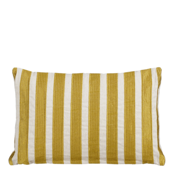 Gek op streepjes? Dan is dit sierkussen iets voor jou! Het rechthoekige kussen heeft een gestreept motief in een warme lichtbruine kleur, echt een eyecatcher! Het kussen is handgemaakt van katoen en heerlijk zacht om tegenaan te zitten. Verder heeft het kussen een ritssluiting, waardoor je de kussenhoes regelmatig kunt reinigen - ideaal! Daar komt bij dat het kussen gevuld is met een brandvertragende vulling. De afmetingen zijn L55 x B35 x H10 cm.