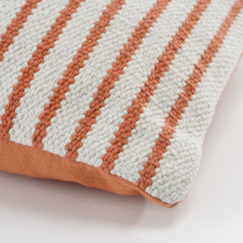 Fan van gestreepte items? Dan is dit oranje sierkussen perfect! Het kussen bestaat gedeeltelijk uit dunne lijnen en gedeeltelijk uit dikke lijnen. Hierdoor krijgt hij een leuk effect en fleur je direct je interieur op. Het kussen is gemaakt van katoen en hij is met de hand gevuld met brandvertragende vulling. Verder heeft het kussen een ritssluiting waardoor je de kussenhoes er makkelijk af kunt halen om deze te reinigen. Het vrolijke sierkussen heeft de vorm van een rechthoek en de afmetingen zijn L55 x B35 x H10 cm.
