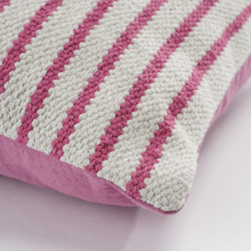 Fan van gestreepte items? Dan is dit roze sierkussen perfect! Het kussen bestaat gedeeltelijk uit dunne lijnen en gedeeltelijk uit dikke lijnen. Hierdoor krijgt hij een leuk effect en fleur je direct je interieur op. Het kussen is gemaakt van katoen en hij is met de hand gevuld met brandvertragende vulling. Verder heeft het kussen een ritssluiting waardoor je de kussenhoes er makkelijk af kunt halen om deze te reinigen. Het vrolijke sierkussen heeft de vorm van een rechthoek en de afmetingen zijn L55 x B35 x H10 cm.