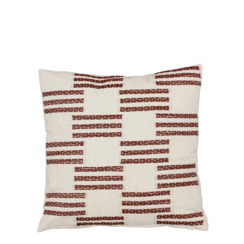 Dit sierkussen voegt een elegante touch toe aan je interieur. Het vierkante kussen is beige en heeft een subtiel, terra streepjespatroon met witte details, waardoor het verfijning en stijl uitstraalt. Het is handgemaakt van katoen: heerlijk zacht en comfortabel om tegenaan te zitten tijdens het lezen of tv-kijken. Bovendien is de kussenhoes afneembaar dankzij de ritssluiting en heeft het kussen een extra veiligheidskenmerk door de brandvertragende vulling. Plaats dit sierkussen als decoratie op de bank of op het bed en geniet van dit esthetische item. De afmetingen zijn L45 x B45 x H10 cm.