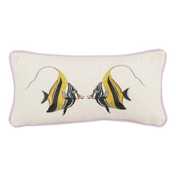Ben je dol op dieren en in het bijzonder vissen? Dan moet je dit sierkussen met vispatroon zeker hebben. Het is gemaakt van katoen en heeft een fraaie lilakleur. Een sierkussen dat heerlijk zacht is om er comfortabel op te liggen en daarnaast ook een geweldig decoratiestuk is. Je kunt het gemakkelijk combineren met andere sierkussens voor een leuke uitstraling. Het sierkussen heeft als afmeting L40 x B20 x H10 cm.