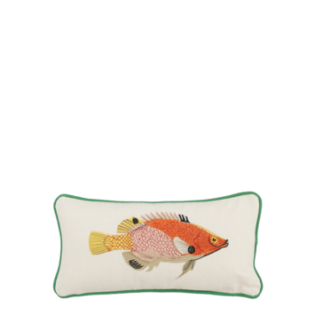 Ben je dol op dieren en in het bijzonder vissen? Dan moet je dit sierkussen met vispatroon zeker hebben. Het is gemaakt van katoen en heeft een fraaie limoenkleur. Een sierkussen dat heerlijk zacht is om er comfortabel op te liggen en daarnaast ook een geweldig decoratiestuk is. Je kunt het gemakkelijk combineren met andere sierkussens voor een leuke uitstraling. Het sierkussen heeft als afmeting L40 x B20 x H10 cm.