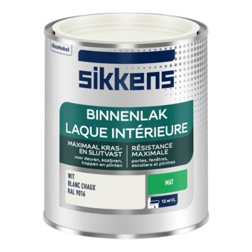 Sikkens binnenlak mat RAL 9016 wit 750 ml is een aflak op waterbasis die je voor binnen kunt gebruiken. Je kunt het met de kwast of roller aanbrengen op onder andere deuren, kozijnen, trappen en plinten. Door de kras- en slijtvastheid van het product biedt het langdurige bescherming van hout. Voor een langdurig perfect professioneel eindresultaat te gebruiken in combinatie met Sikkens Grondlak.
