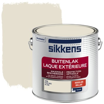 Sikkens buitenlak hoogglans RAL 9001 crème 2,5 liter is een aflak op basis van alkydhars die je voor buiten kunt gebruiken. Je kunt het met de kwast of met de roller aanbrengen op onder andere deuren en kozijnen. Sikkens buitenlak is geschikt voor het aflakken van hout, staal, non-ferro metalen en diverse kunststoffen mits je ze voorziet van de juiste grondverf. Voor een perfect resultaat op je houtwerk gebruik je eerst Sikkens buitenlak grondlak.