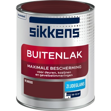 Sikkens Buitenlak Zijdeglans Wijnrood 750 ml is een zijdeglans aflak op basis van alkydhars die u voor buiten kunt gebruiken. De buitenlak is vochtregulerend, geeft een goede bescherming en is gemakkelijk aan te brengen. Je kunt het met de kwast of met de roller aanbrengen op onder andere deuren en kozijnen. Sikkens Buitenlak Zijdeglans is geschikt voor het aflakken van hout, staal, non-ferro metalen en diverse kunststoffen mits je ze voorziet van de juiste grondverf. Voor een perfect resultaat op je houtwerk gebruik je eerst Sikkens Grondlak. De zijdeglanslak is verkrijgbaar in een 750ml verpakking en in de 14 meest populaire Sikkens kleuren, welke ook onderling goed te combineren zijn.
