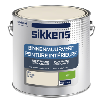 Sikkens muurverf binnen mat RAL 9001 crème wit 2,5 liter is geschikt voor het afwerken van muren en plafonds voor elk type ruimte binnenshuis. Het product is bestendig tegen vlekken en uitstekend reinigbaar met behoud van kleur en glans. Hierdoor blijven muren langer mooi en is overschilderen minder vaak nodig. Sikkens binnenmuurverf mat heeft een goede dekking, waardoor een optimaal rendement wordt behaald van de verf. Voor een perfect professioneel eindresultaat te gebruiken in combinatie met Sikkens voorstrijk.