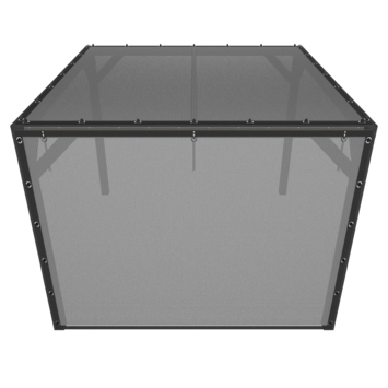 Pergola Silvano zwart gespoten vuren met zonweringdoek en zijdoek is 256 cm hoog, 328 cm breed en 324 cm diep, afhankelijk van de kant waar het zijdoek wordt bevestigd. De pergola heeft een stevige basis dankzij de halfhoutse hoekverbindingen en schoren. De robuuste staanders van 12 x 12 cm geeft de pergola een stoer karakter. Het kwalitatieve schaduwdoek biedt bescherming tegen de zon. Het zwart doek heeft een lichtgrijze en een donkergrijze kant. Je kunt zelf bepalen welke zijde je boven en onder plaatst, beide opties zijn mogelijk. Je kunt het schaduwdoek gemakkelijk bevestigen met zeilogen en knoppen. Het zijdoek wordt aan de bovenzijde bevestigd met een caravanrail en aan de zijkanten met zeilogen en knoppen. De 3 oprolriempjes aan de bovenzijde van het doek zorgen ervoor dat het doek tijdelijk kan worden opgerold. Zowel het doek aan de bovenzijde als aan de zijkant kunnen s ’winters er af worden gehaald, voor een langere levensduur.
