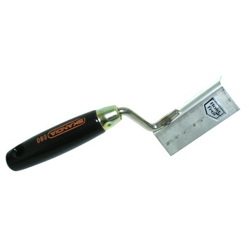 Deze Skandia buitenhoektroffel, ook wel buitenhoektroffel genoemd, wordt gebruikt om de hoeken van een muur af te werken met pleistermortel. Deze buitenhoektroffel heeft een roestvast stalen blad van 80 millimeter lang en 30 millimeter breed, stevig bevestigd aan een zwart gelakt houten handvat met ophanggat.