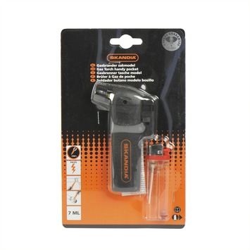 De Skandia gasbrander is een 110 millimeter zakmodel brander met een inhoud van 7 milliliter. Met de praktische piëzo-aansteking is de brander snel gebruiksklaar om te solderen of hardsolderen, het verhitten van metaal of het aansteken van een open haard of barbecue. De brander behaalt een maximum vlamtemperatuur van 1300 graden Celsius. Deze Skandia gasbrander wordt geleverd exclusief gasvulling.