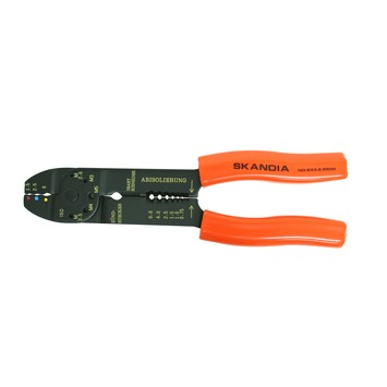 De Skandia kabelschoentang 200 mm, ook wel krimptang genoemd, kan onder andere worden gebruikt om kabelschoenen van 1,5 tot en met 5 vierkante millimeter aan een kopergeleider (elektrisch draad) vast te krimpen. Ook is deze 200 millimeter lange krimptang geschikt voor het afknippen van kleine boutjes van zachte metalen van M2,6 tot en met M5 en het afstrippen van isolatie van een elektrische draad van 0,75 tot en met 6 vierkante millimeter.