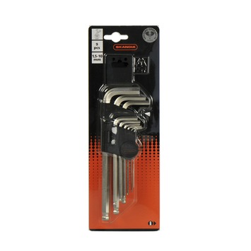 De Skandia kogel inbussleutelset is een 9-delige set kogel inbussleutels in de maten 1,5, 2,0, 2,5, 3,0, 4,0, 5,0, 6,0, 8,0 en 10,0 millimeter. Het voordeel van een kogel inbussleutel is dat deze ook te gebruiken is als de sleutel niet volledig loodrecht in de kop gestoken kan worden, bijvoorbeeld als de inbusschroef lastig toegankelijk is. Alle sleutels hebben aan de korte zijde een reguliere aansluiting en aan de lange zijde een kogelaansluiting. De sleutels kunnen praktisch en netjes worden opgeborgen in de kunststof houder, waarop de maten duidelijk staan aangegeven, zodat je nooit meer hoeft te zoeken naar de juiste maat torx inbussleutel. De houder is te bevestigen aan een riem, waardoor de Skandia torx inbussleutelset ook voor de veeleisende doe-het-zelver prima geschikt is.