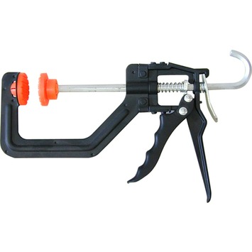 Een handige pistoolgreep die zorgt voor het snel en gemakkelijk te kunnen klemmen. Uitermate geschikt voor gebruik in kleinere ruimtes. Zwart geëpoxeerd. Nylon klemblokken.
