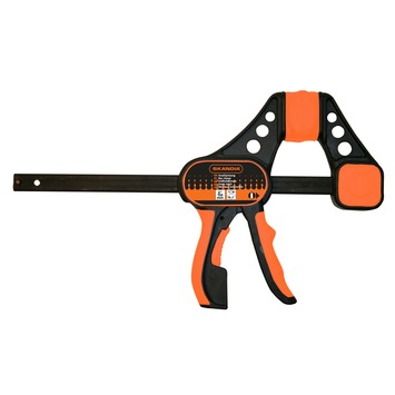 De Skandia lijmklem eenhandsklem 150 mm is een praktische lijmklem met een maximale opening van 15 cm. Hierdoor kun je met deze lijmklem voorwerpen van maximaal 15 cm vastklemmen. Het voordeel van deze eenhandsklem ten opzichte van een traditionele lijmklem is dat je slechts één hand nodig hebt voor het losmaken en vastklemmen. Verder is deze lijmklem gemakkelijk aan te passen zodat deze ook gebruikt kan worden voor het van binnenuit klemmen van voorwerpen, de maximale klemmaat is dan zelfs 42,5 cm. Verder zorgen de dikke rubberen doppen ervoor dat het te klemmen materiaal niet kan beschadigen.