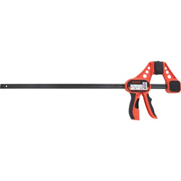 Deze Skandia lijmklem eenhandsklem 450 mm is een zwaar uitgevoerde lijmklem, geschikt voor het klemmen van voorwerpen met een maximum klembereik van 450 millimeter en klemdiepte van 75 millimeter. De lijmklem is door zijn met softgrip en antislip uitgevoerde pistoolgreep met één hand te bedienen. De rubberen doppen voorkomen beschadigingen aan het voorwerp. Met deze lijmklem is het ook mogelijk om voorwerpen van binnenuit te klemmen/spreiden.