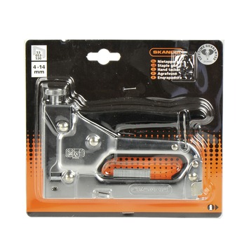 Het Skandia nietpistool metaal, ook wel tacker genoemd, wordt onder andere gebruikt voor het vastnieten van diverse isolatiematerialen, stoffering op meubels, fotodoek op raamwerk, enzovoort. De sterke metalen tacker is uitgevoerd met een metalen binnenwerk en voorzien van een draaiknop waarmee je de slagkracht kunt aanpassen aan de hardheid van het te nieten materiaal. De Skandia tacker is geschikt voor nieten van het type 53, 053, 530 met de maten 4, 6, 8, 10, 12 en 14 millimeter.