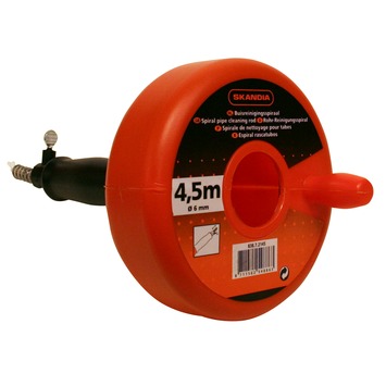 Verzinkte veer in kunststofhuis. Verhelpt snel en doeltreffend verstoppingen in de keuken, badkamer en toilet. Deze veer kan men uit de houder trekken en vastzetten voor gebruik. Gemakkelijk schoon te spoelen. Kan zowel U als S - bochten aan.