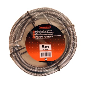VERZINKTE veer voor rioolpijpreiniging met handgreep. Eenvoudig en doeltreffend. De 5 en 9 mtr. zijn voorzien van eindkrullen en voorzien van metalen opbergframe.
