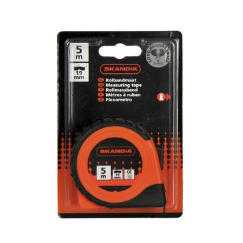 De Skandia rolmaat 5 m is een praktische rolmaat met een zwaar uitgevoerde metalen meetlint van 5 meter lang en 19 millimeter breed. Het meetlint is duidelijk afleesbaar en kan tijdens het meten worden vergrendeld. Na meting rolt het meetlint soepel op. Een rolmaat is een praktisch gereedschap om altijd in je gereedschapskoffer te hebben.