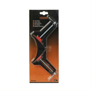 De Skandia verstekklem 75 mm is een handig hulpmiddel voor het klemmen van materiaal in een hoek van 90 graden. De verstekklem heeft een maximale spanbereik van 75 millimeter. De verstekklem is gemaakt van zwart gelakt metaal en voorzien van 2 spanschroeven en twee gaten voor een eventuele bevestiging op een werkbank.