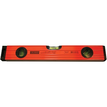 Met deze Skandia waterpas 400 mm kun je bepalen of een lijn of vlak exact horizontaal of verticaal is. Deze 400 millimeter lange waterpas is voorzien van 3 bloklibellen: horizontaal, verticaal en 45 graden. Deze sterke aluminium waterpas is voorzien van een oranje epoxy deklaag, met aan de uiteinden zwarte kunststof doppen.