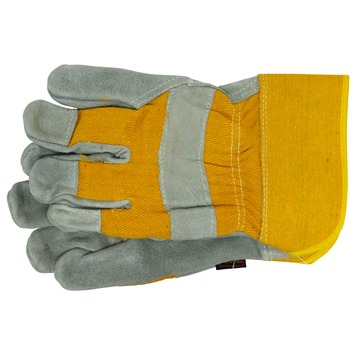 Skandia werkhandschoenen rundleer grijs/geel XXL ter bescherming van je handen tijdens het klussen. De handschoenen zijn aan de handpalmzijde gemaakt van sterk rundleer en aan de rugzijde van katoen. De knokkels zijn extra verstevigd met rundleer. Verpakking: 1 paar werkhandschoenen maat 11 (XXL).