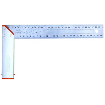 De Skandia winkelhaak prof 300 mm is geschikt voor het aftekenen van een haakse hoek (90 graden) of om een bestaande hoek op haaksheid te controleren. De winkelhaak wordt onder andere gebruikt in de bouw bij houtbewerking, bij het inbouwen van kasten en bij het aftekenen en plaatsen van vensterbanken. Deze 300 millimeter lange winkelhaak heeft een roestvaststalen blad voorzien van een duidelijke maatverdeling, een standaard graden-indeling met verstek, een uitschuifpen voor kantondersteuning en een blok uit aluminium.