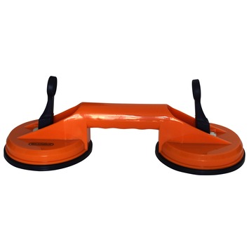 De Skandia zuignap dubbel 2x115 mm max 60 kg is een oranjekleurige dubbele zuignap met een diameter van 115 millimeter, die gebruikt kan worden om grote platen, zoals glas, marmer en andere vlakken materialen te verplaatsen en te bevestigen. De zuignap is ook geschikt als extra handvat bij het verplaatsen van bijvoorbeeld wasautomaat of koelkast. De zuignap heeft een maximaal hefvermogen van 60 kilogram.
