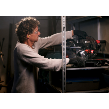 De „20V Max” SKIL 3590 telescopische accu-afkortzaag is uiterst compact en licht. Maar laat u niet misleiden door het formaat. Net als alle andere SKIL „20V Max” accugereedschappen wordt dit model aangedreven door de toonaangevende geavanceerde „PWRCORE 20™” accu- en opladertechnologie. Dit krachtige accusysteem, gecombineerd met een slimme „overslide”-functie, betekent dat dit gereedschap eenvoudig veeleisende zaagklussen kan aanpakken. Bij de meeste afkortzagen is de zaagkop aan de stangen bevestigd die bij het zagen aan de achterkant van het product uitsteken. De SKIL 3590 heeft echter stationaire stangen en een glijdende zaagkop, wat betekent dat de zaag dicht bij een muur kan worden geplaatst. Bevestiging van een werkstuk is een makkie met het unieke snelklemsysteem dat veel sneller is dan gebruikelijke klemsystemen. En de accurate laser geeft duidelijk de zaaglijn aan. Deze is gemakkelijk in te stellen, een groot pluspunt dat optimale nauwkeurigheid en flexibiliteit garandeert om de laserlijn aan de linker- of rechterkant van het zaagblad te projecteren. Zaaghoeken kunnen traploos worden ingesteld voor nauwkeurig schuin en verstek zagen en vooringestelde aanslagen garanderen een probleemloze instelling van de meest gebruikte hoeken. De tafelverlengstukken voor langere werkstukken kunnen helemaal worden ingeklapt en er is zelfs een extra handgreep voor gemakkelijk dragen. De SKIL 3590 wordt ook geleverd met een grote stofzak en geïntegreerde stofzuigeraansluiting in de aluminium beschermkap. De SKIL 3590 AA wordt geleverd met één 4,0Ah „KEEPCOOL™”-accu, een snellader, een 216 mm zaagblad met 40 hardmetalen tanden, tafelverlengstukken, een snelklem voor het werkstuk en een stofzak.