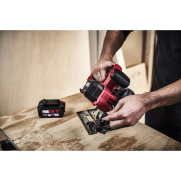 - Inclusief zaagblad (18 hardmetalen tanden) en breedtegeleider; accu en oplader niet inbegrepen.