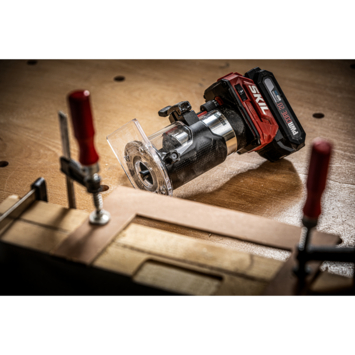 SKIL „20V Max” (18 V) SKIL 3170 kantenfrees biedt optimale controle dankzij het zeer compacte ontwerp en de geoptimaliseerde ergonomie. U kunt de freesdiepte snel en met een zeer hoge mate van precisie instellen tot wel 43mm. Het zicht op het werkstuk is gewaarborgd dankzij een heldere led, de transparante voetplaat en de optie om een stofzuiger aan te sluiten.De SKIL 3170CA wordt geleverd met twee spantangen en een breedtegeleider. De accu en oplader zijn niet inbegrepen.
