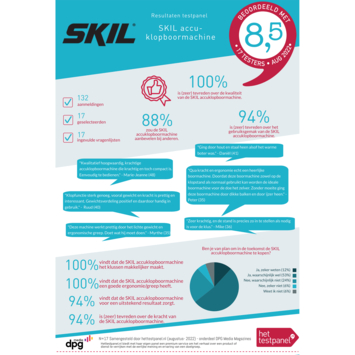 De „20V Max” 3075 accu-klopboormachine is onderdeel van het compacte borstelloze assortiment van SKIL. Deze gereedschappen zijn extreem compact en bieden een combinatie van hoge prestaties en een ongeëvenaard niveau van gemak. Net als alle andere SKIL „20V Max” accugereedschappen wordt dit model aangedreven door de toonaangevende geavanceerde „PWRCORE 20™” accu- en opladertechnologie. Onze SKIL 3075 is een borstelloze accu-klopboormachine met klopboorfunctie. Dit gereedschap is ideaal voor het boren in hout, metaal en zelfs metselwerk, en voor de zwaarste schroefklussen. Dankzij het compacte en lichte ontwerp is boven het hoofd werken of op lastig bereikbare krappe plekken een makkie. De digitale borstelloze motor levert meer vermogen, meer efficiëntie en een 10x langere levensduur dan een vergelijkbare motor met koolborstels. Het gereedschap heeft twee snelheden en 17+1+1 koppelinstellingen voor gewoon boren en klopboren en nauwkeurige schroefresultaten. Dankzij de functieselector kunt u gemakkelijk schakelen tussen schroeven, boren en klopboren. Dit gereedschap heeft een snelwisselboorkop van 13 mm met ratel voor optimale grip van het bit. Fantastische zichtbaarheid van het werkstuk wordt gewaarborgd door de gepatenteerde geavanceerde LED-lamp met 2 modi. Dankzij de automatische asvergrendeling kunnen accessoires gemakkelijk worden gewisseld. Kortom, dit veelzijdige gereedschap biedt echt alles wat u nodig heeft: betrouwbare Lithium-Ion accutechnologie, variabele snelheid voor volledige controle en softgrip die voor extra werkcomfort zorgt. De SKIL 3075 CA wordt geleverd met een dubbelzijdig schroefbit en een ceintuurklem. De accu en oplader zijn niet inbegrepen.