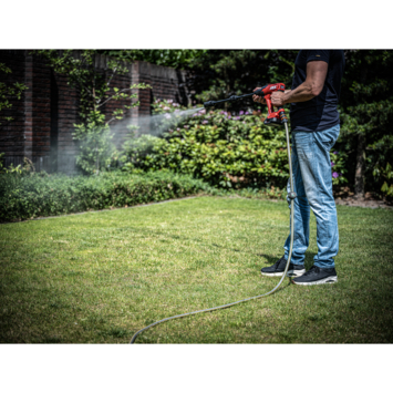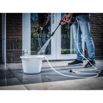 De accu mobiele drukreiniger SKIL 0762 20V Max is uitgerust met een veelzijdige multistraalpijp (0°, 20°, 60° en roterend), waarmee u de waterstroom eenvoudig kunt aanpassen aan elke buitenreinigingstaak. Zoals alle andere SKIL 20V Max tuingereedschappen zonder snoer, wordt dit model aangedreven door de toonaangevende, geavanceerde PWRCORE 20™ accu- en opladertechnologie. Geniet van draadloze vrijheid en reinig moeiteloos terrassen, fietsen, auto’s of tuinmeubelen met een krachtige waterstroom van 240 l/u en tot 24 bar druk. Voor extra reinigingskracht kunt u de zeepfles op de spuitmond bevestigen om water met zeep te mengen. Schakel tussen de High-stand voor zware klussen of de ECO-stand voor een langere gebruiksduur en hogere efficiëntie. De SKIL 0762 biedt grote flexibiliteit doordat u water kunt aanzuigen uit emmers, jerrycans of zelfs vijvers met behulp van de meegeleverde 5 meter slang met waterfilter. Hij kan ook direct op uw buitenkraan worden aangesloten voor onmiddellijk gebruik. Deze draadloze mobiele drukreiniger kan omgaan met watertemperaturen tussen 5°C en 40°C. Met een gebruiksduur tot 37 minuten met een 5,0Ah 20V Max-accu heeft u ruim voldoende vermogen om uw schoonmaaktaken te voltooien. Dankzij het exclusieve EASY STORAGE-ontwerp van SKIL neemt dit gereedschap na gebruik minimale opbergruimte in. De SKIL 0762 CA wordt geleverd met een 4-in-1 spuitmond, twee lansstukken, een zeepfles, een slang van 5 meter, waterfilter en een EASY STORAGE-haak.