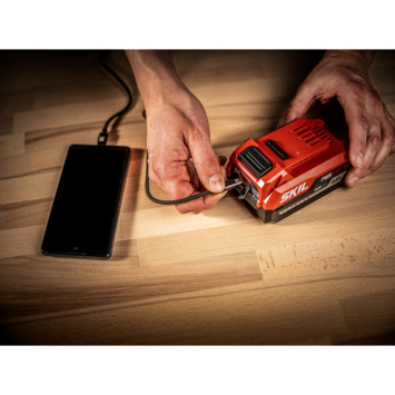 Lithium-Ion „20V Max” 4,0 Ah „KEEPCOOL™” accu met geïntegreerde „PWRASSIST™” USB-C-aansluiting en 45W USB-C PD oplader set.