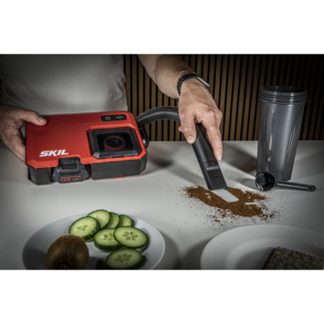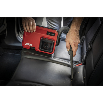 De 20V Max, SKIL 3167 accustofzuiger levert een zuigkracht van max. 30 Airwatt om de meeste dagelijkse verontreinigingen in en om het huis, de auto of de camping op te ruimen. Door het compacte ontwerp en de verlengbare, flexibele slang (max. 100 cm) kan deze bijna overal eenvoudig worden gebruikt. De stofzuiger wordt geleverd met een spleetzuigmond voor moeilijk bereikbare, krappe plekken en een borstelzuigmond om los vuil en stof gemakkelijker op te zuigen. Behalve dat het een fantastische stofzuiger in een compacte behuizing is, kunt u de luchtstroom van 500 /min en ventilatiedruk van 15 kPA ervan ook gebruiken om luchtbedden, strandballen en meer op te pompen, zodat de SKIL 3167 uw ideale metgezel op reis is. SKIL 3167 is uitgerust met een multilaags filtersysteem. Dit geavanceerde filtratiesysteem is ontworpen om vuil, stof en andere verontreinigende stoffen vast te houden, waardoor een schonere, gezondere omgeving wordt gewaarborgd. De filters kunnen eenvoudig worden verwijderd en uitgewassen zodat u op elk moment op hun efficiëntie kunt vertrouwen. Het stofreservoir heeft een inhoud van 200 ml en kan op een hygiënische manier worden geleegd met een eenvoudig druk op de knop, zodat het weggooien een fluitje van een cent is.Met twee snelheidsinstellingen kunt u kiezen voor de langere looptijd tot max. 35 minuten constant, efficiënt reinigen, wat perfect is voor het aanpakken van grotere oppervlakken. Of schakel naar een modus met een hoog vermogen met een zuigkracht van een indrukwekkende 31 Airwatt om probleemloos zelfs de hardnekkigste vervuillende stoffen in een mum van tijd te verwijderen. De SKIL 3167 stofzuiger maakt deel uit van het PWRCORE 20™ accuplatform en werkt zodoende met bijna alle SKIL 20V MAX accu's. Er passen ook PWRCORE 12 (12 V) accu's in. De SKIL 3167 wordt geleverd zonder een accu, zodat u uw stroombron overeenkomstig uw bestaande SKIL-verzameling kunt aanpassen. Ontworpen met een modern, slank profiel komt deze veelzijdige stofzuiger perfect op zelfs de krapste plekjes. Of deze nu in uw keukenkastje is genesteld, weggestopt is in uw auto of discreet in een hoekje thuis is opgeborgen, de SKIL 3167 garandeert efficiënt opbergen zonder dat er concessies aan de toegankelijkheid worden gedaan. De SKIL 3167 is zelfs uitgerust met bevestigingsclips, zodat deze heel handig aan de zak op de achterkant van uw auto kan worden bevestigd of aan een muur kan worden gehangen. Deze functie zorgt ervoor dat uw stofzuiger niet alleen aan de kant is, maar ook altijd binnen handbereik, klaar om in een mum van tijd allerlei vuiligheid aan te pakken.